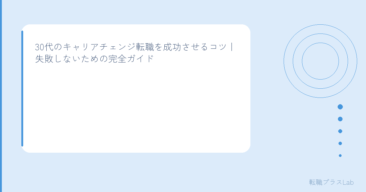 焦らず、でも先延ばしにもせず、今できる準備から始めてみてください。30代のキャリアチェンジは「遅い」んじゃなくて、「経験値がある分、有利にできる」タイミングですよ。