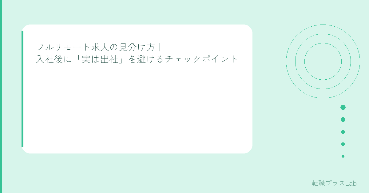 フルリモート求人の見分け方|入社後に「実は出社」を避けるチェックポイント