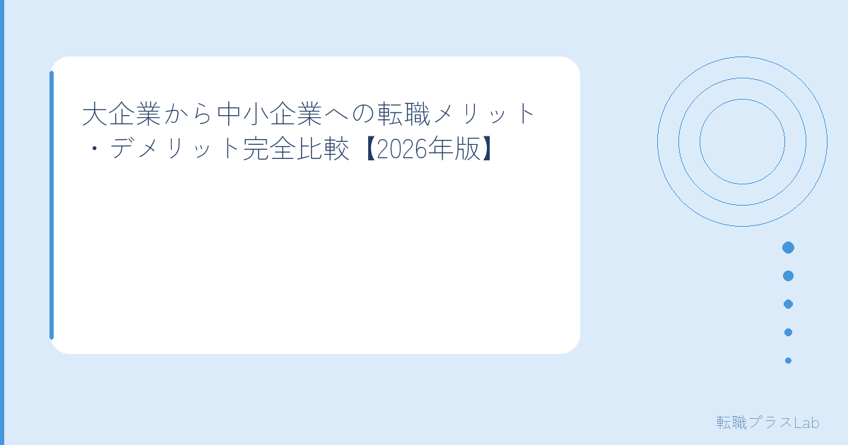 ぶっちゃけ、僕がエージェント時代に見てきた中で、大企業→中小企業の転職は「大正解」だった人と「大後悔」だった人がきれいに半分ずつでした。違いは事前の準備と覚悟です。