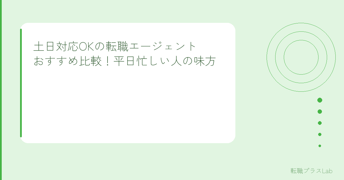 結論、土日や夜間にも対応してくれるエージェントは意外と多いです。大手エージェントの大半は土曜対応しています。この記事では、土日対応のエージェントを比較し、在職中でも効率的に転職活動を進める方法を紹介します。